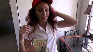 Photos description: "Delivery Service Slut". I was waiting impatiently at home for my Chinese food to show up. I was starving and about to give the delivery driver a piece of my mind, but then I opened the door and noticed that it was a hot chick at my door! Lyla Letto was her name and getting her to suck my cock was the game! I tried to get Lyla to come inside. She nearly dropped my food as she was putting her bike down! She even said it was a big bike for a small woman, so I could only imagine what she'd think of my rock hard cock! When Lyla didn't have change, I came clean: I told her that every time I order I hope to see this cute teen at my door! I really wanted to give Lyla a big tip--of my dick that is! I offered Lyla some more money and good thing that this honey can't say no to some green! She flashed her perky tits and dropped down to her knees where she finally gobbled down my big, fat cock inside her slutty whore mouth! I stuffed Lyla's dripping wet pussy before splitting my egg roll with her! After all, a delivery slut's gotta eat!