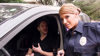 Photos description: "Cock Out Cop Out". Calling all units, calling all units. Please be advised that Officer Carrera is reporting a possible 314 in vicinity of Rodbold Avenue. Suspect is classified as a Caucasian male with a thin build and thick cock. Carrera is attempting to apprehend perpetrator and has requested no additional backup. Male appears to be a foreign national and Carrera is remedying the situation - with force if necessary. Hold… Carrera now radioing that she has apprehended the suspect and is restraining him… bodily? Reports are coming in 5x5 that Carrera is now being bent over her cruiser and being fucked with a nightstick. Officer going down on suspect! Cumshots fired! Repeat, facial in progress! Code 80085! All units, report to Officer Carrera's 20 for immediate clean-up!